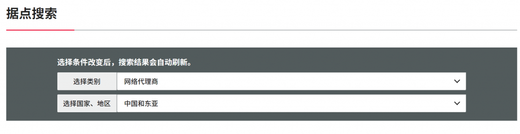 找到主要據(jù)點信息,據(jù)點搜索里找到網(wǎng)絡(luò)代理商選擇對應(yīng)國家地區(qū),搜索就可以了,如下圖