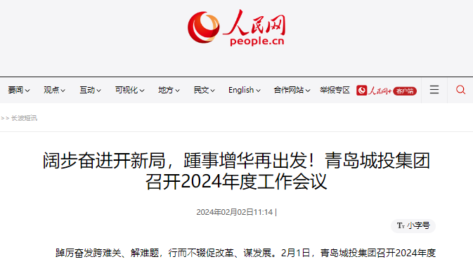 人民網:闊步奮進開新局,踵事增華再出發!青島城投集團召開2024年度工作會議